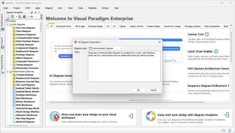 Discover how Visual Paradigm’s AI generates UML Communication Diagrams from natural language, streamlining online purchase flow visualization for developers and …